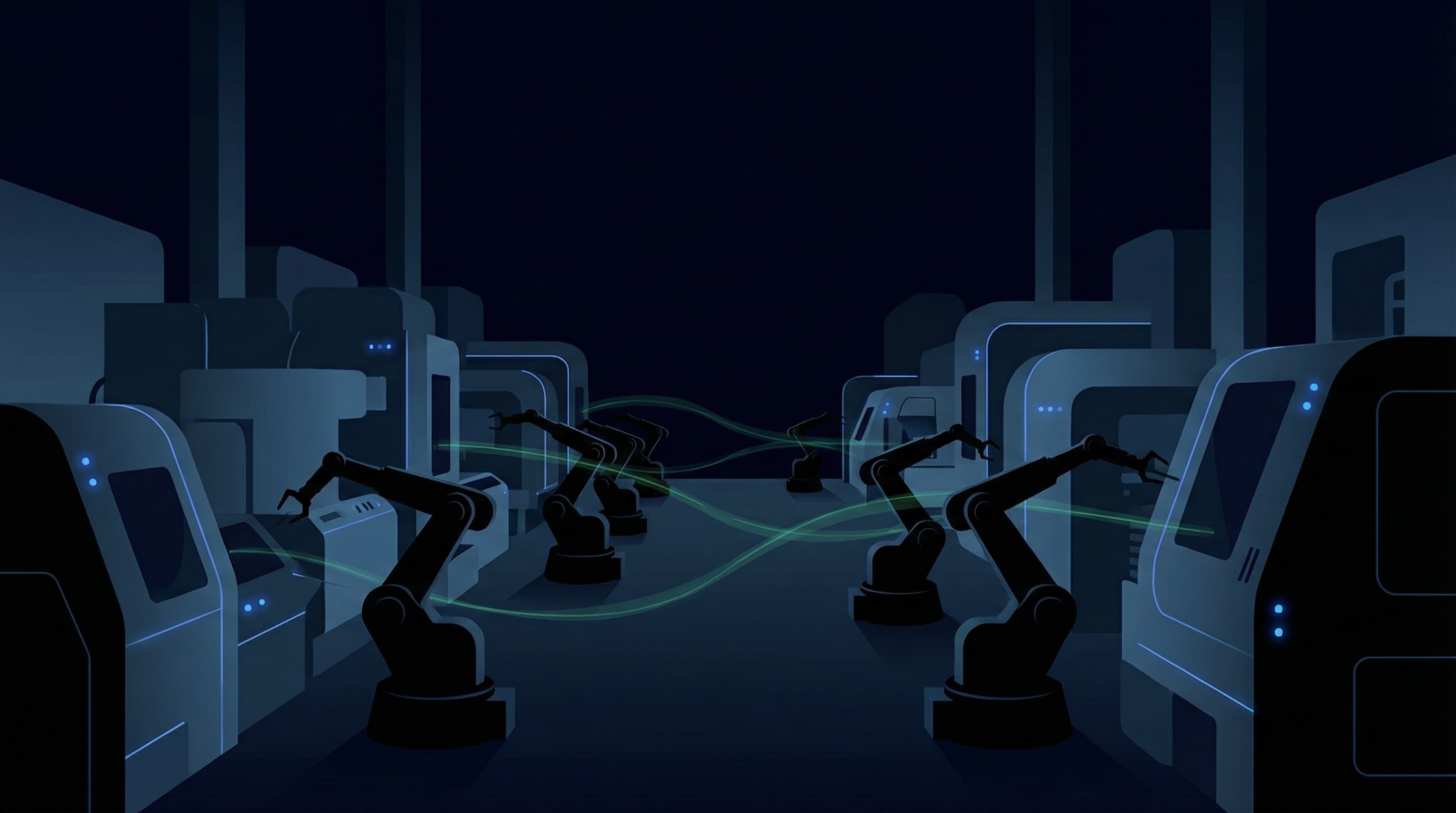 Somewhere in Oshino, Japan, a Fanuc factory builds robots. The robots build other robots. The lights are off. The heat is off. Nobody is on the floor. The facility runs unattended for thirty days at a stretch.